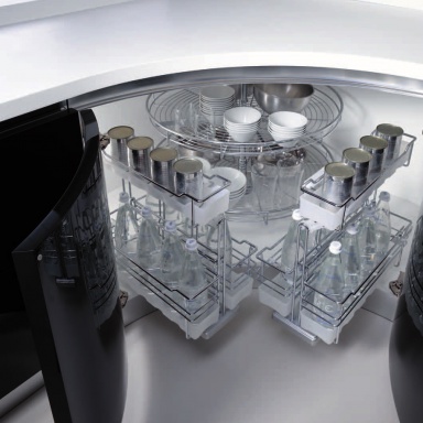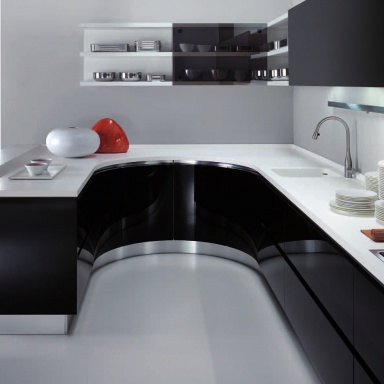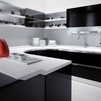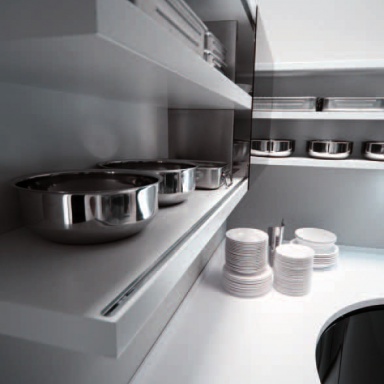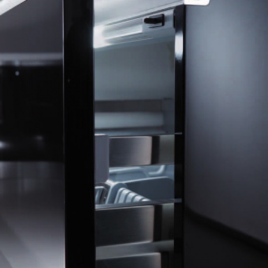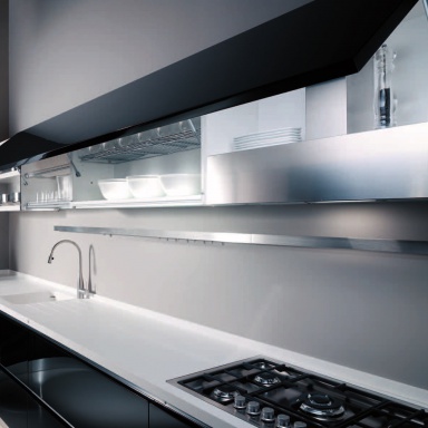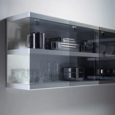 facades: glass accessories: stainless steel frame: MDF countertop: stone frame, facades: lacquered |