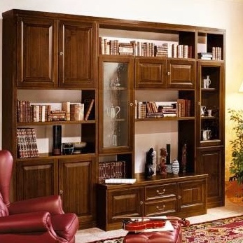 Modular system from Italian manufacturer Moletta Mobili. The model is made in classic style. Consists of open and closed shelves and drawers. The frame is made from solid wood. Accessories made of metal and painted in Golden color. Swing doors are offered in wood and glass. The model offers spaciousness and practicality.