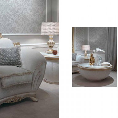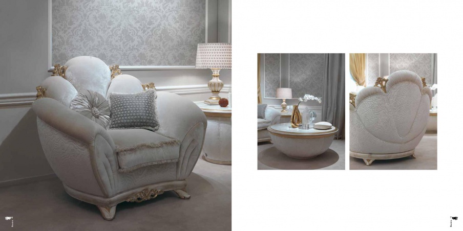 The chair Perla, the Italian manufacturer from Bastex. The frame is made of wood. Upholstery - textiles. Zutova gamma: pearl white and Golden. The model is decorated with carved elements. The chair resembles the shape of the shell.