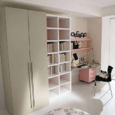 Headsets for children from the Italian manufacturer Morassutti. Set includes a single bed, a wardrobe and a Desk. The furniture is made of solid wood and metal. Colours in stock.