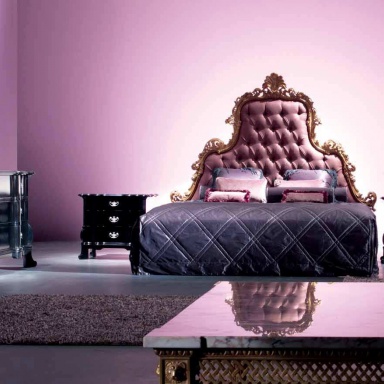 Headsets for bedrooms from Italian manufacturer OAK. Includes double bed with high headboard, two bedside tables and a chest of drawers. Material - solid wood. Finish available in black. The headboard is covered with a textile from the company portfolio. The ornament serves as a decorative stitch-Capito and hand carved. The metal fittings. Set made in a classic style.
