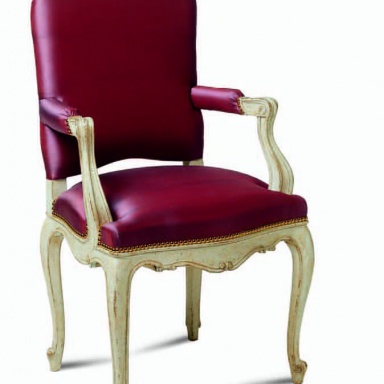 Modern chair from Italian descent Salda. Gracefully curved front legs are in the form of gabriola, and other beautiful elements of this chair are classic modern furniture art, made “antique”. Therefore, this chair is versatile enough to fit in a wide range of interiors of living room, dining room, restaurant, hotel, etc. Decorated with hand-carved. The frame is made of wood. Upholstery - leather. The model is available in fabric from the collection company.