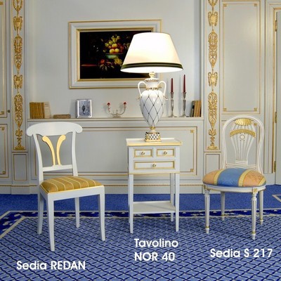 Chair with upholstery from Italian producer, Castello. The frame is made of wood. Upholstery - textiles from the company portfolio. The model is offered with a square back or round. The chair is made in a classic style.