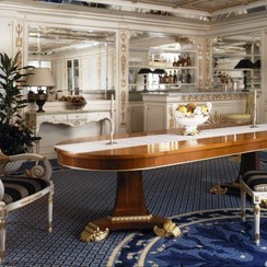 Chair with upholstery from Italian producer, Castello. The frame is made of wood. Upholstery - textiles from the company portfolio. The model is offered with armrests. The chair is made in a classic style.