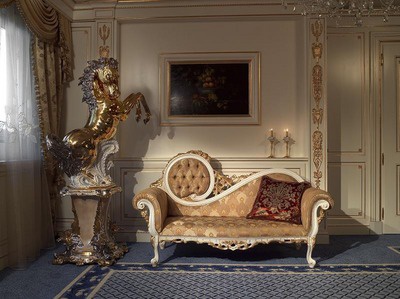 The sofa, from the Italian producer, Castello. The frame is made of wood. Upholstery - textiles from the company portfolio. The legs are made in the form of Cabriole. The back is decorated with stitch Capito. The model will perfectly complement the classic interior of the living room.