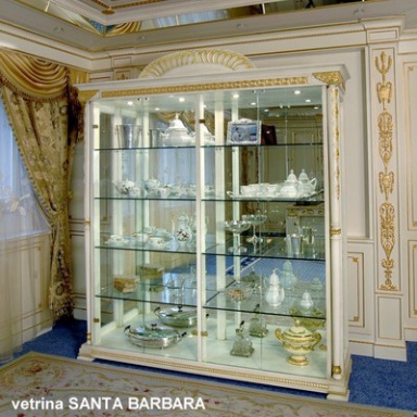 Showcase, from the Italian producer, Castello. The frame is made of wood. Finishing varnish from the company portfolio. Doors - glass. The model is made in classic style.