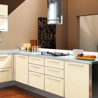 Corner kitchen from the Doge collection from the Italian manufacturer Zaccariotto Cucine. Kitchen in a modern style. Made of solid wood and laminate varieties. The facades in the decoration of lacquer from the company portfolio. The boxes are equipped with a system that provides silent and smooth closing. Handles - steel. Colours in stock.