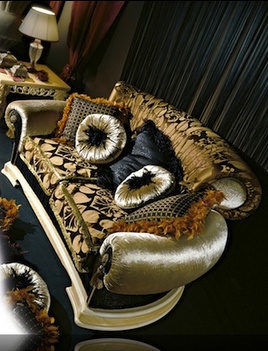 Sofa from Italian manufacturer Socci Anchise. The frame is made of solid wood of valuable breeds. Upholstery - textiles from the company portfolio. Filler - polyurethane foam. Sofa operetsja on the base of the tree. Massive arms wrapped. Style - Rococo.