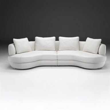 Rondo semi-circular sofa from Italian manufacturer Natuzzi. The model is made in modern style. The frame is completely hidden. Upholstered in textile or leather. Filler - foam or feather. Low the back is supplemented with decorative pillows. The sofa is durable and original design.