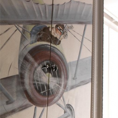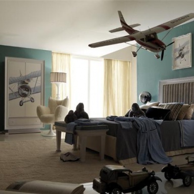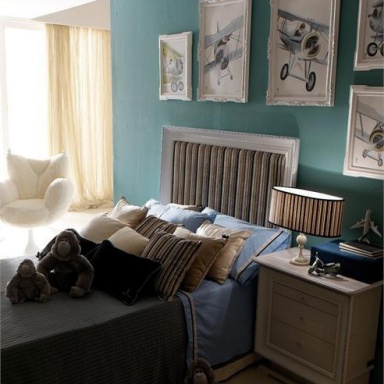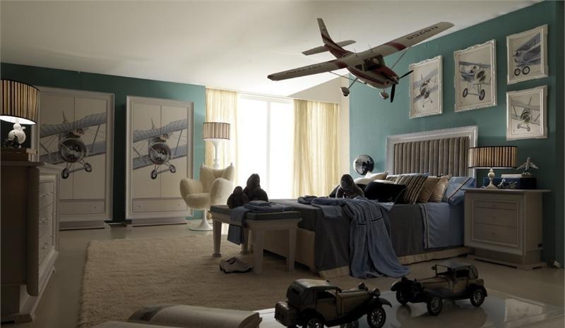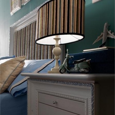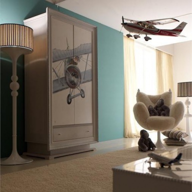 Headsets for children from the Italian manufacturer AltaModa. The model is intended for a boy. Includes single bed, bedside tables, wardrobe and chest of drawers. Frames made of solid wood. Finish - gloss or Matt lacquer. Headsets are made in a modern style.