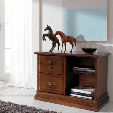 Stand from Italian manufacturer at the stilema stand. The frame is made from solid wood in the finishing varnish from the company portfolio. The model consists of closed and open sections for storing different things. The Cabinet is made in classic style.