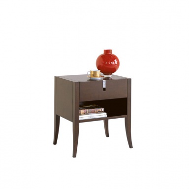 Bedside table Solitaire the production of Selva. The model with one drawer and open niche. The frame is made from solid beech, the table top and drawer are finished with rich cherry. The drawer insert is decorated with Swarovski crystals. There are other options of scenery. The model is made in modern style.