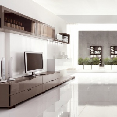 Modular system from Italian manufacturer Zanette. Includes dresser with double doors and hanging shelves. The frame is made from solid wood. The surface is covered with a glossy varnish. Color option to choose from a collection company. Sash blind or glazed. The model is made in a modern style.