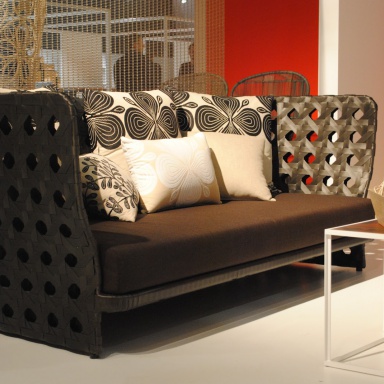 The Canasta sofa from Italian manufacturer B&B Italia. The frame is made of aluminum and plastic. The design of complementary decorative pillows. A lovely choice for garden or terrace. Colours in stock.