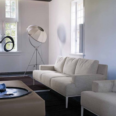 The Jean stool from the Italian manufacturer B&B Italia. The frame is made of metal, upholstery is leather or textiles from a range of companies. The model is designed for modern interiors. Colours in stock.