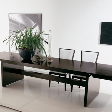 Dining table from Annibale Colombo Italian manufacturer Annibale Colombo. The frame is made from solid cherry. Model folding/sliding, rectangular shape. A lovely choice for dining room in modern style. Colors: natural wood color, brown.