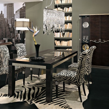 | Description: | A chair from the Italian manufacturer Florence Collections. Model with a high back. Frame made of solid wood. Finish Atlantique 6/1 cat.A. Legs are decorated with silver foil. Upholstery - leather Zebra Print cat.C. |