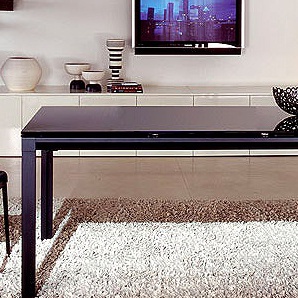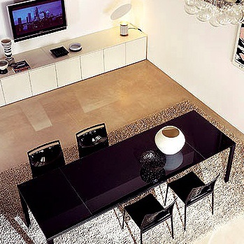Dining table Chat Double from Italian manufacturer Bonaldo. The frame is made from aluminium, the table top is glass. Model sliding a rectangular shape. The perfect choice for dining room in modern style. Product color brown.