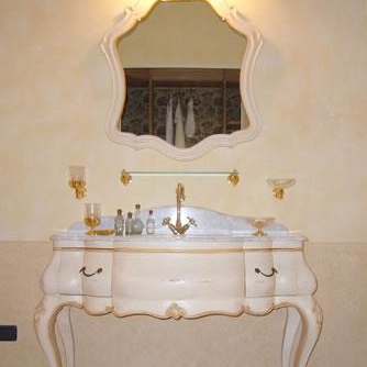 The Cabinet under the sink Bagno 3 from the Italian manufacturer Arcari. The frame is made from solid wood. The model is carved, with drawers. The perfect choice for a bathroom in a classic style. Colors: white, Golden.