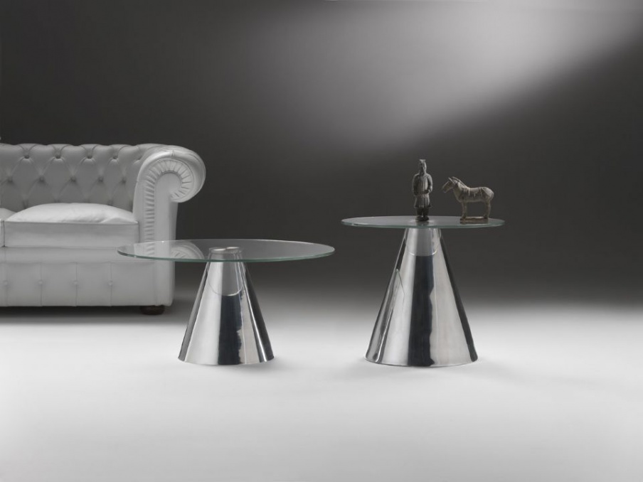 Coffee table from the Italian manufacturer Klab Design. Model a round coffee table made of metal and glass. Color from the manufacturer dark. The tapered metal leg, table top glass. The perfect solution for modern interior.