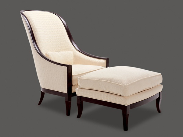 The chair and Ottoman from the Italian manufacturer Busnelli Adamo. Exclusive furniture will add a touch of solemnity and uniqueness. Frame made of natural wood, decorated with carved elements. Upholstery - textiles from the company portfolio.