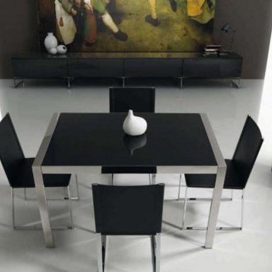 Set for the dining room of the Italian manufacturer Di Lazzaro. The presented model dining table and chairs. From the manufacturer color is black and silver. The modern style of execution.