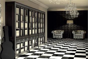 Bookcase from Spanish manufacturer La Ebanisteria. The frame is made from solid wood. Model with open / glassed-in shelves and drawers. Decor elements - silver. A chic choice for the interior in art Deco style. Colors: silver, black.