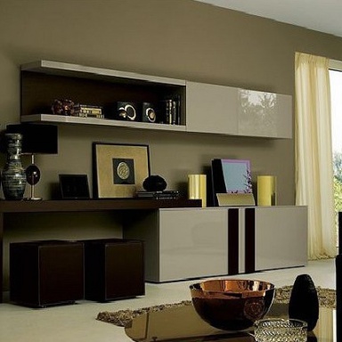 Modular storage system from Italian manufacturer San Giacomo. The frame is made from solid wood, the surface is treated with varnish from the range of the campaign. Module for books and heavy things. Wall with double doors, open shelves and built-in table. A lovely choice for the living room in a modern style. Colours in stock.