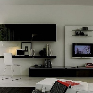Modular storage system from Italian manufacturer San Giacomo. The frame is made from solid wood, the surface is treated with varnish from the range of the campaign. Module for books and TV. Wall with open shelves, closed sections and a writing Desk of rectangular form. Great selection for modern interiors. Colors: white, brown.