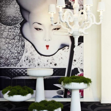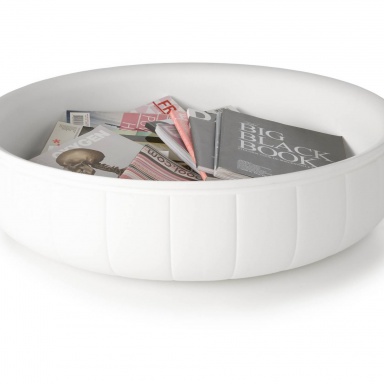 Table Container Bowl from the Dutch manufacturer Moooi. The frame is made from polyethylene (PE), in black or white. This model can serve as a container for magazines, as a trivet and as a coffee table-a container with an extra lid. Design solution for internal and external interior.