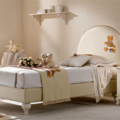 Baby bed PM.BD.YO.6 from the Italian manufacturer Piermaria. The frame is made from solid wood, upholstery - textiles from a range of campaigns. Model with high headboard. Colours in stock.