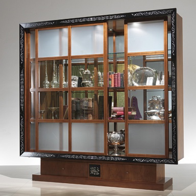 frame: solid wood base (veneer): walnut frame contour: ebony frame ebony: mother of pearl the back wall: mirror glass doors: glass mother-of-pearl on the frame, the contour of the Cabinet: inlay glass doors: Matt |