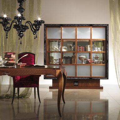 A display Cabinet made of solid wood inlaid with mother-of-pearl, Carpanelli