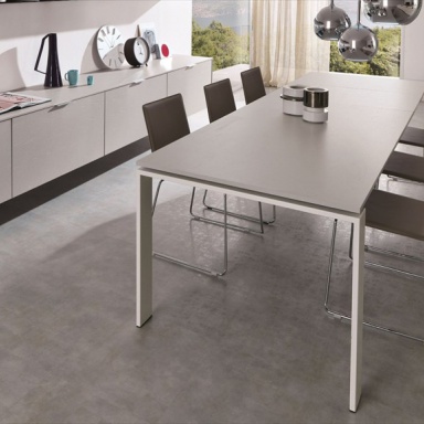 Dining table from the Italian manufacturer Zalf. Top is made of melamine. The surface is treated with varnish from the range of the factory. The model is rectangular. A good choice for modern interiors. Product color white.