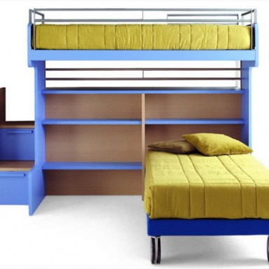 Bunk bed Castello di Gel from the Italian manufacturer Zalf. The frame is made from solid wood, the surface is treated with varnish from the range of the factory. Metal supports. The model is equipped with open shelves and drawers located under the staircase. Design in modern style. Colours in stock.