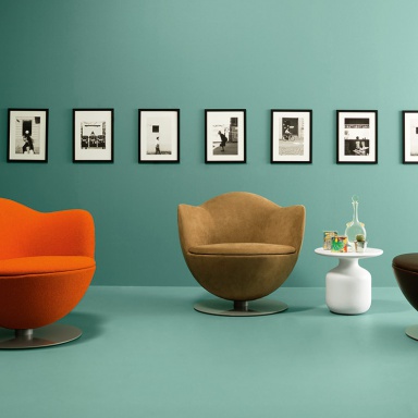 The Dalia chair from the Italian manufacturer Cappellini. Model on a swivel base made of metal. A poetic and contemporary armchair reminiscent of the flower whose name it bears. The body is made of fiberglass and resin, and the seat and back are composed of polyurethane foam. Upholstery of textile or leather. Colours in stock.