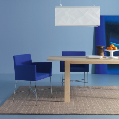Crossoft chair from the Italian manufacturer Cappellini. Legs, frame - metal. Upholstery - textiles, leather. The model with armrests is designed in modern style. Colours in stock.