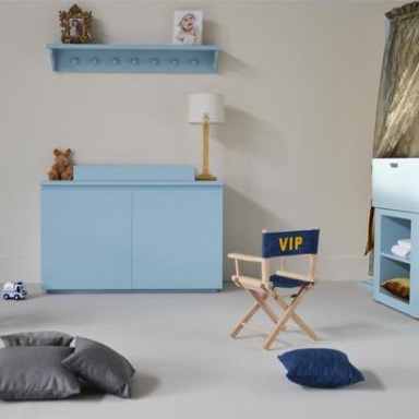 A chest of drawers from Italian manufacturer Anna Baby Room. Skeleton models made of solid wood. Hinged sash. Finish offered Matt lacquer blue color. Is practical and compact.