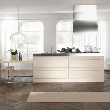 Kitchen Glamour from Italian manufacturer Doimo Cucine. Made of solid wood. The stainless steel countertop. This set is equipped with ample cupboards, doors without handles opened by pressing lightly. Built-in appliances. Colors in the catalog of the company.