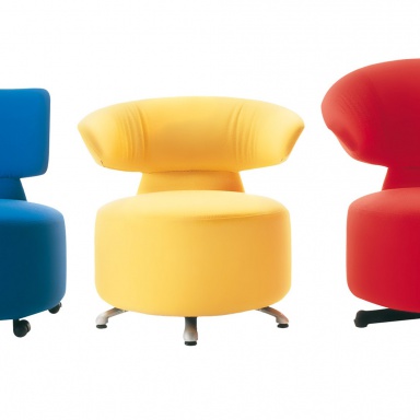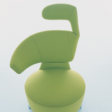 Chairs K06 AKI BIKI CANTA by Italian manufacturer Cassina. Model on fixed steel base with aluminum fittings. Available also on black castors. The chair consists of a backrest with armrests with variable shape, which can be used as headrests. A steel frame. Filling - polyurethane foam and polyester/wool. Removable upholstery in fabric or leather. Colors range from the manufacturer.