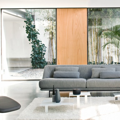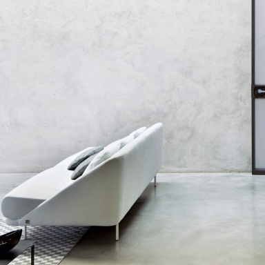 Daytona two-seater sofa from Italian manufacturer Busnelli. The frame is made of wood, legs made of metal with epoxy lacquer in black or white. The seat cushion has a supporting frame made of not deformable polyurethane foam and 100% polyester fiber. Upholstery - leather or textiles from a range of campaigns. The model is designed for modern interiors. The design of complementary decorative pillows from down.