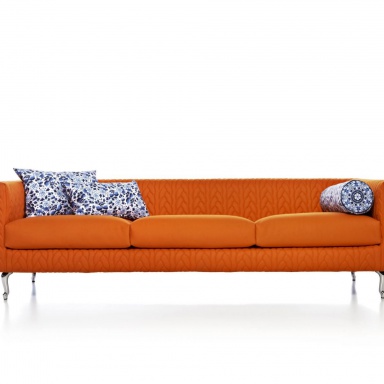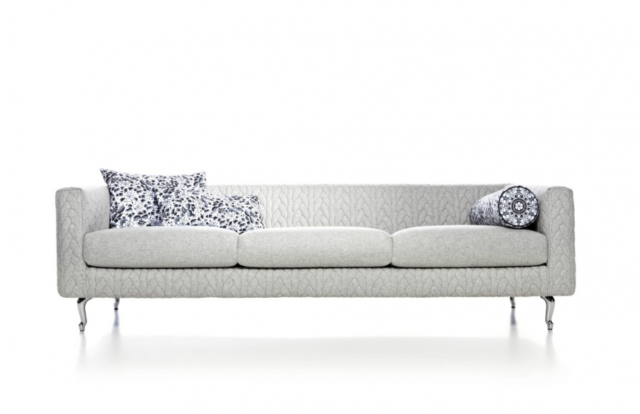 Three seater sofa Delft Jumper from the Dutch manufacturer Moooi. The model on the basis of metal, the legs are made of chrome steel, the filler - polyurethane foam of varying stiffness. Cover made of 100% wool, decorated with braid, colors to choose from the range of the manufacturer. The design of complementary decorative pillows. Designer addition to your interior.