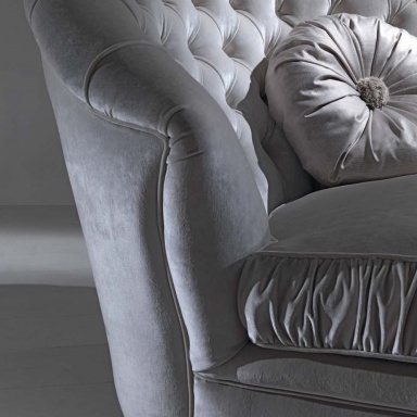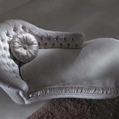 Princess daybed in fabric from Italian manufacturer Asnaghi (Made in Italy), the collection is Timeless. Upholstered in textile or leather from the company portfolio. Headboard adorned with decorative screed Capito. The frame is made of wood. The model is supplemented with decorative pillows. Colours in stock.