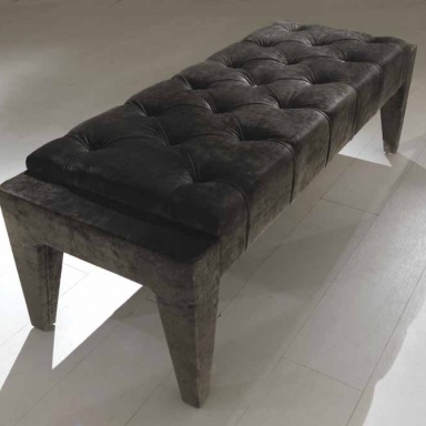 Soft bench Atena from the Italian manufacturer Asnaghi (Made in Italy), the collection Atmosphere. Upholstered in textile or leather from the company portfolio. The frame is made of wood. The design is complemented by decorative nails for furniture. Colours in stock.