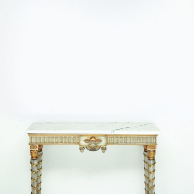 Console S. I. P. ARR 09 from Italian manufacturer Colombo Stile.The frame is natural wood. Finish: silver and gold leaf, patina.