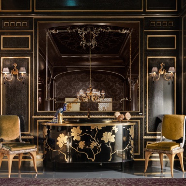frame: wood decor/table top: gold leaf coating: lacquered |