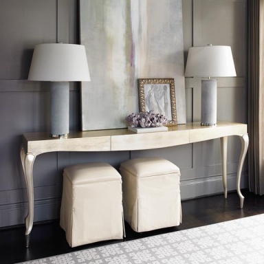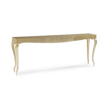 Console Gold-y on cast metal legs from an American manufacturer Caracole. Frame of solid wood on cast legs in the form of Cabriole. Finish - plated with a lacquer coating from the company portfolio. Model with long pull-out drawer is perfectly fit into the interior, narrow hallway, behind the sofa in the living room or bedroom. The modern design.