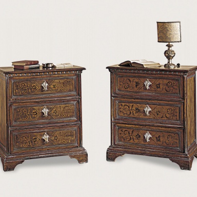 Bedside table from the Italian manufacturer Francesco Molon, a collection of Italian and French Country. The model is executed in classical style, decorated with inlay. The case of natural wood. Decorative hardware (handles, keys and locks drawers) - metal.