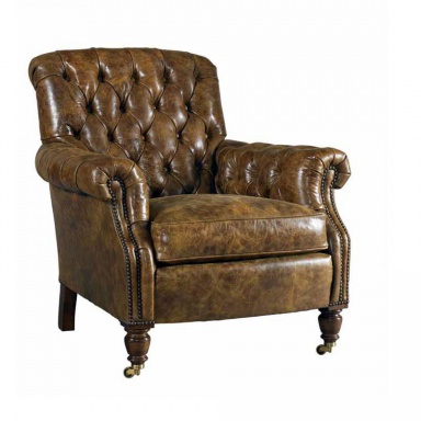 Stanton leather chair from American manufacturer Lillian August. The model is made of wood. Carved front legs with castors, and the back straight. The upholstery is made of leather color antique walnut, decorative furniture nails fixed. The back is decorated with ornamental stitch-Capito. The armrests are in the form of scrolls. Model in the classic style. Color variations in accordance with the manufacturer's catalogue.