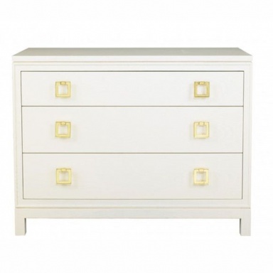 Dresser Clifford from the American manufacturer Lillian August. Model of chest of drawers with three drawers for storage. The facades of the drawers decorated with gilt brass handles in the shape of square rings of color. Hull material - wood, color - white. The furniture is executed in classical style with modern trends. Color variations in the catalog of the manufacturer.